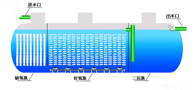 一體化污水處理設(shè)備是將一沉池、I、II級接觸氧化池、二沉池、污泥池集中一體的設(shè)備,并在I、II級接觸氧化池中進行鼓風曝氣,使接觸氧化法和活性污泥法有效的結(jié)合起來,節(jié)省了找人設(shè)計污水處理工藝和做基礎(chǔ)建設(shè)的繁瑣。
